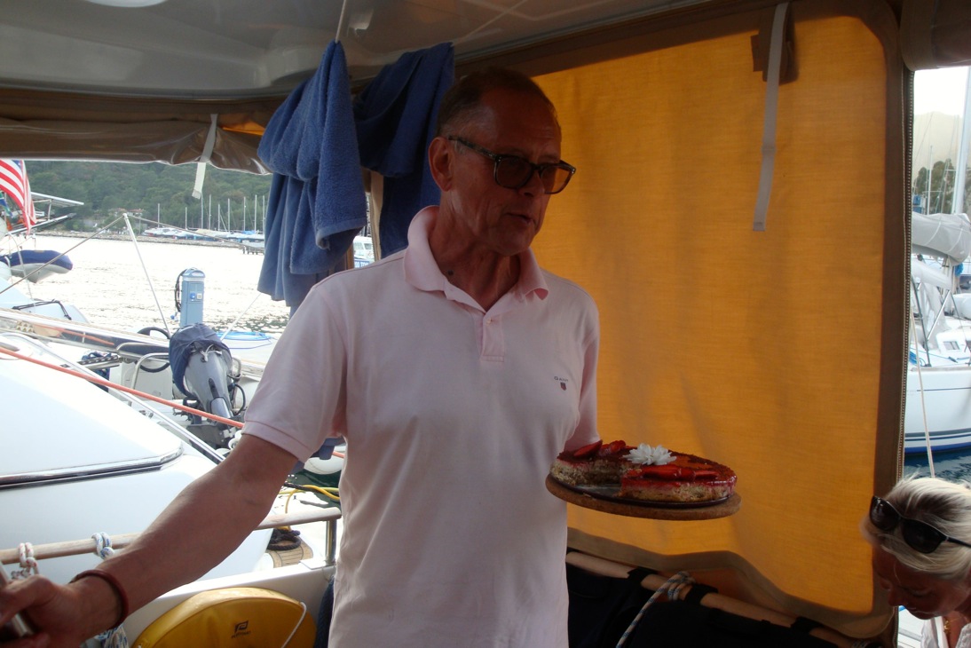 Lollo och Pelle med S/Y Froggy låg i Göcek när vi kom in. Väntar på besök. Pelle fyller år och kommer vandrande med Lollo och tårta till Marina Turk där vi hade placerat oss. En mycket trevlig kväll.